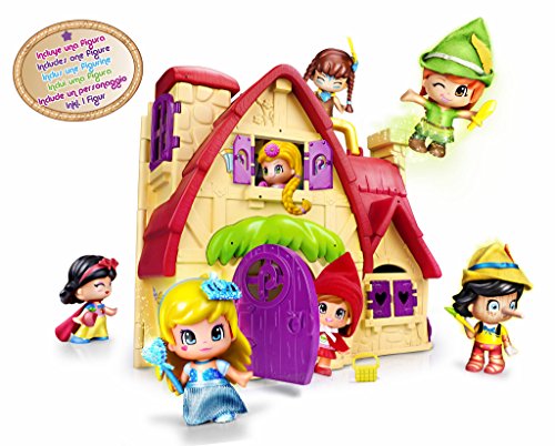"Con la casa de los cuentos de Pin y Pon los cuentos pueden contarse de muchas maneras : Dentro hay un escenario distinto para cada uno de ellos ; la torre de Rapunzek, la cocina que comparten Cenicienta y Blancanieves la cama con el lobo de Caperucita. Incluye figura Cenicienta vestida de porbre y de princesa."